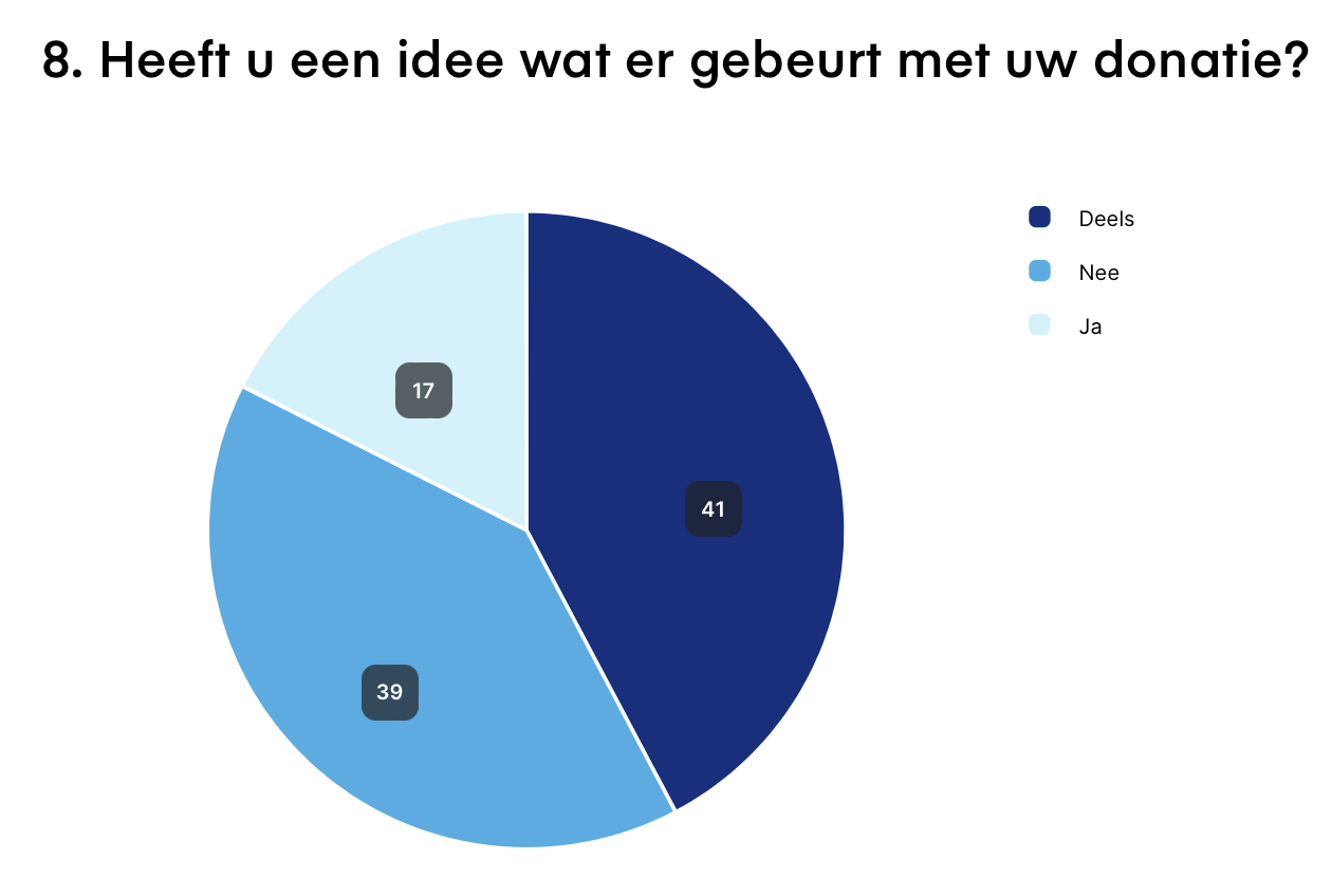 #### Het volgende belangrijke punt was: Hebben de respondenten een idee van wat er precies met hun donaties gebeurt?&#x20;