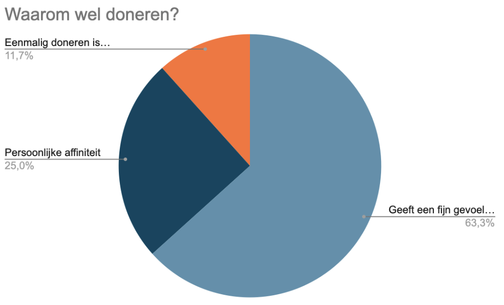 Hier is een betere visualisatie van de verdeling van redenen waarom mensen wel doneren: