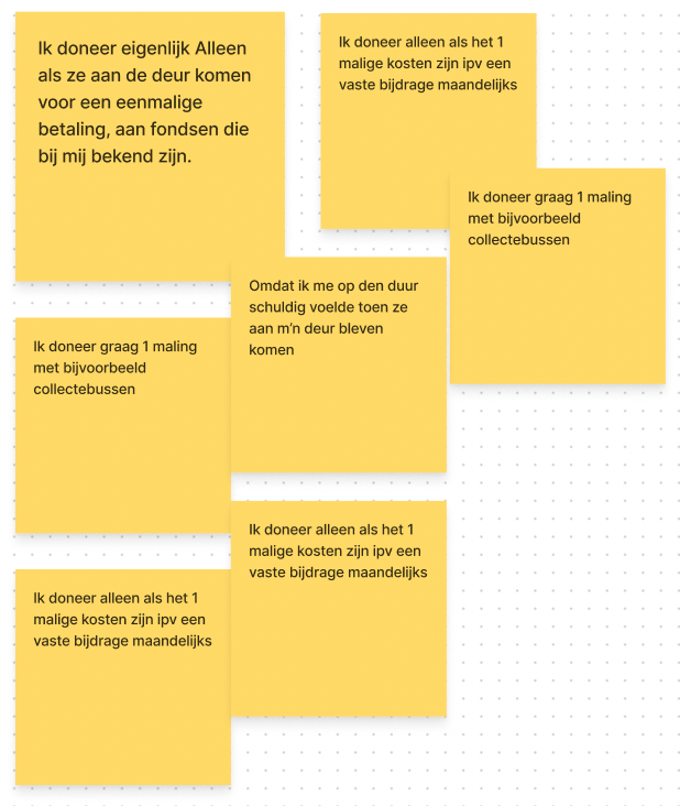<figure><img src="https://1878294948-files.gitbook.io/~/files/v0/b/gitbook-x-prod.appspot.com/o/spaces%2FGVdys9K9uQuy1wuHtCfN%2Fuploads%2FVtLiLKsHFepHM9YVuiWp%2FSchermafbeelding%202022-11-18%20om%2013.54.48.png?alt=media&#x26;token=80081a7e-c0b7-4a7e-82af-dbd32061e526" alt=""><figcaption><p>7 van de 60 respondenten wil het liefst eenmalig doneren, bij collecte bijv.</p></figcaption></figure>