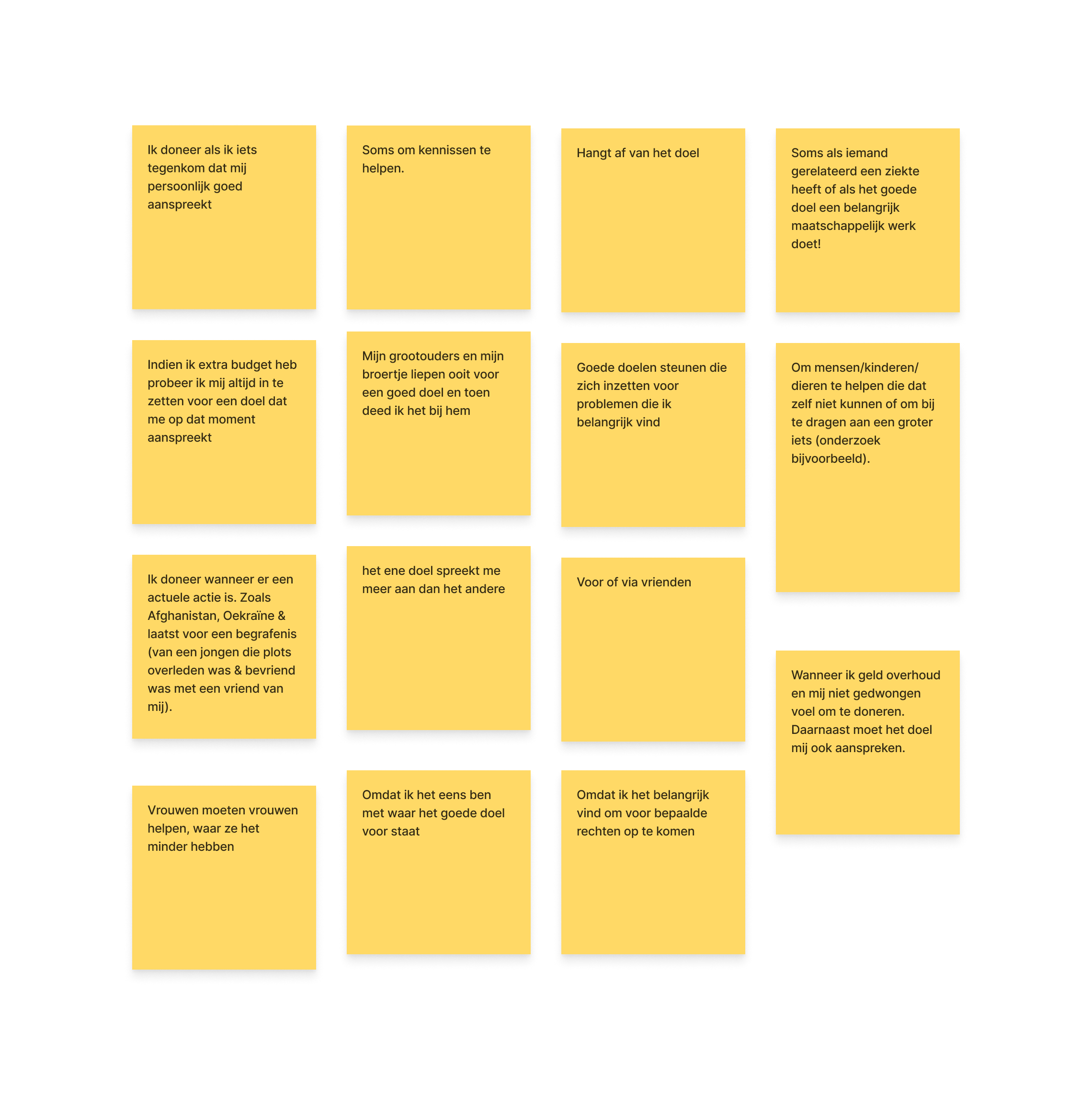 <figure><img src="https://1878294948-files.gitbook.io/~/files/v0/b/gitbook-x-prod.appspot.com/o/spaces%2FGVdys9K9uQuy1wuHtCfN%2Fuploads%2Fc541Le1D3DSw9sqRykcB%2Fwledoneren2.png?alt=media&#x26;token=79b076b3-1979-4555-830d-0b69ed0c602d" alt=""><figcaption><p>15 van 60 respondenten heeft persoonlijke affiniteit waarvoor ze willen doneren.</p></figcaption></figure>