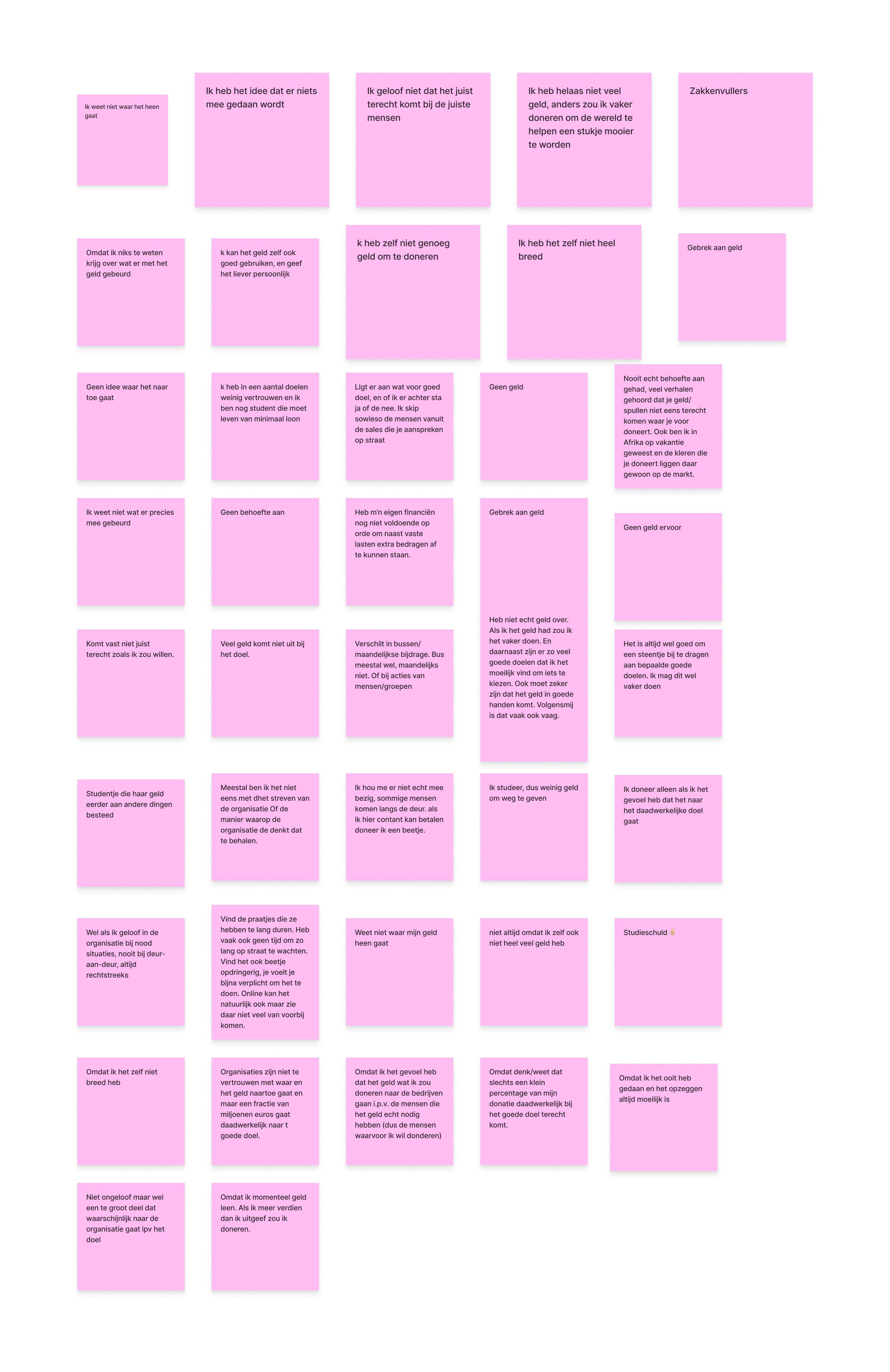 Dit zijn alle antwoorden die ik heb verzameld waarom mensen **niet** doneren&#x20;
